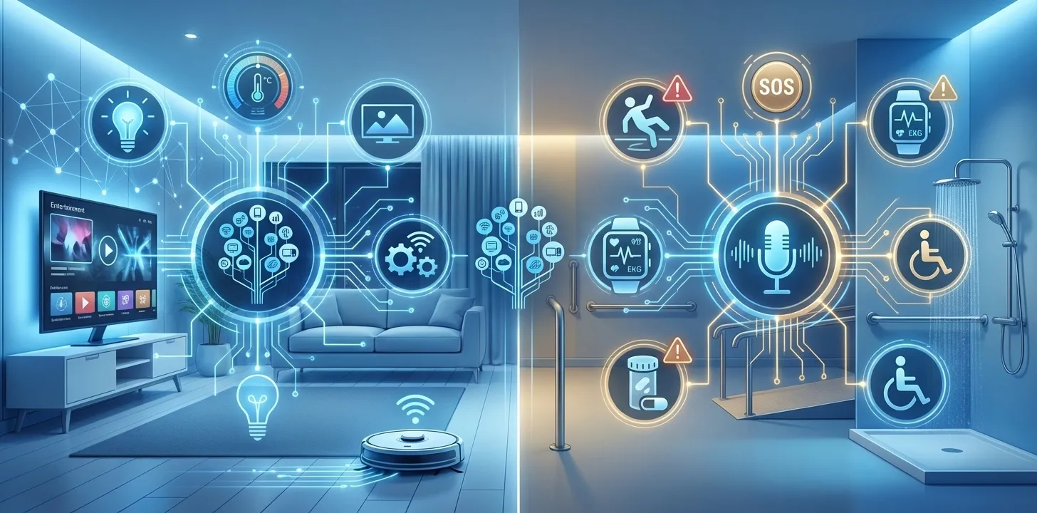 شاید با خودتان بگویید: “مگر همه خانههای هوشمند مثل هم نیستند؟” پاسخ کوتاه این است: خیر. اگرچه ابزارها شبیه هم هستند، اما تفاوت خانه هوشمند سالمند با خانه هوشمند معمولی در فلسفه وجودی و نحوه عملکرد آنهاست. بیایید این تفاوت را باز کنیم: