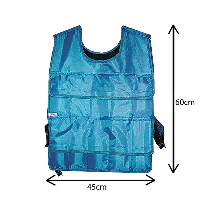- جلیقه وزنهای بزرگ دارای جیبها یا محفظههایی برای قرار دادن وزنهها (معمولاً پلاک فلزی یا کیسههای شنی) است.